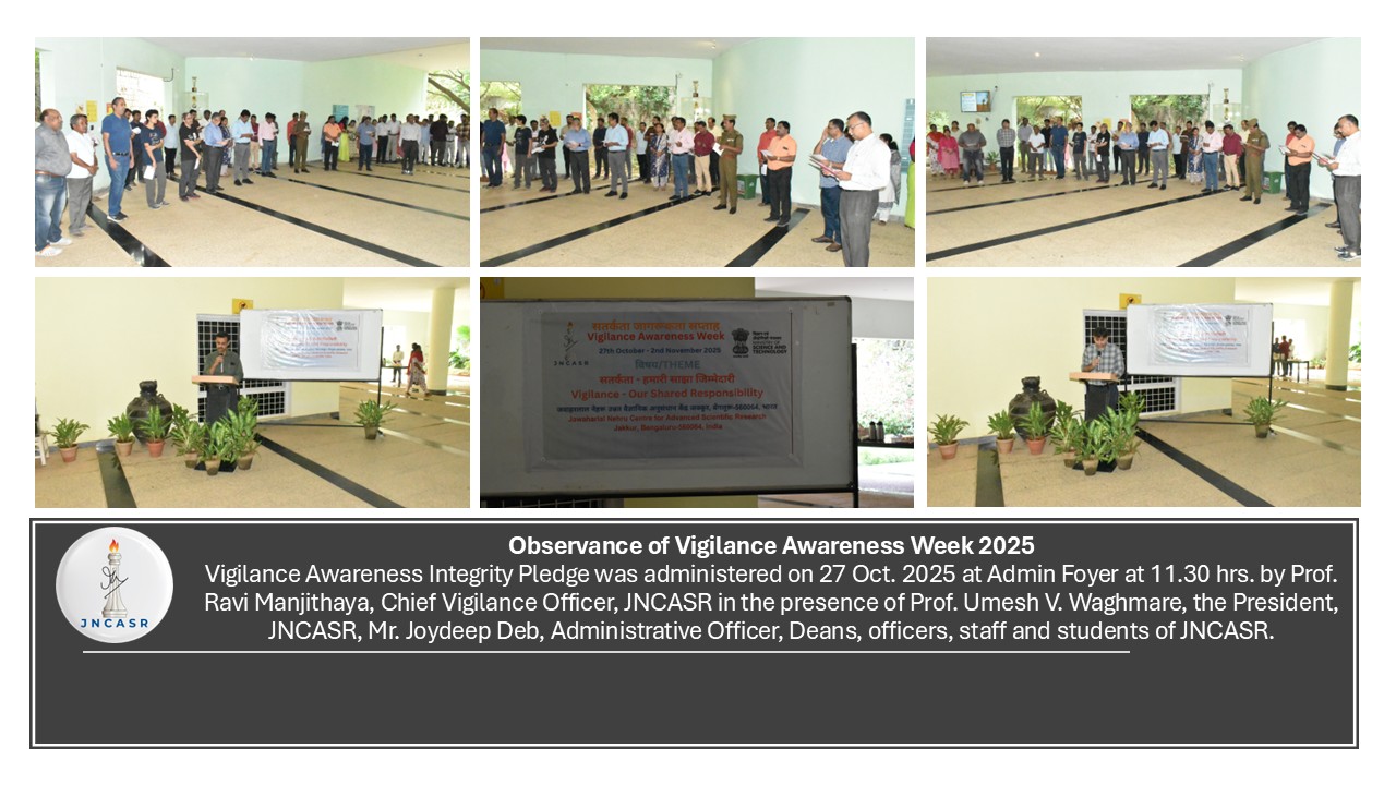 The Jawaharlal Nehru Centre for Advanced Scientific Research (JNCASR) observed the Vigilance Awareness Week during 27.10.2025 to 02.11.2025 with the theme "सतर्कता हमारी साझा जिम्मेदारी है" "Vigilance: Our Shared Responsibility".